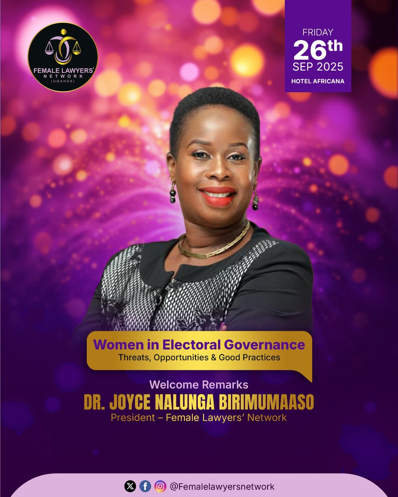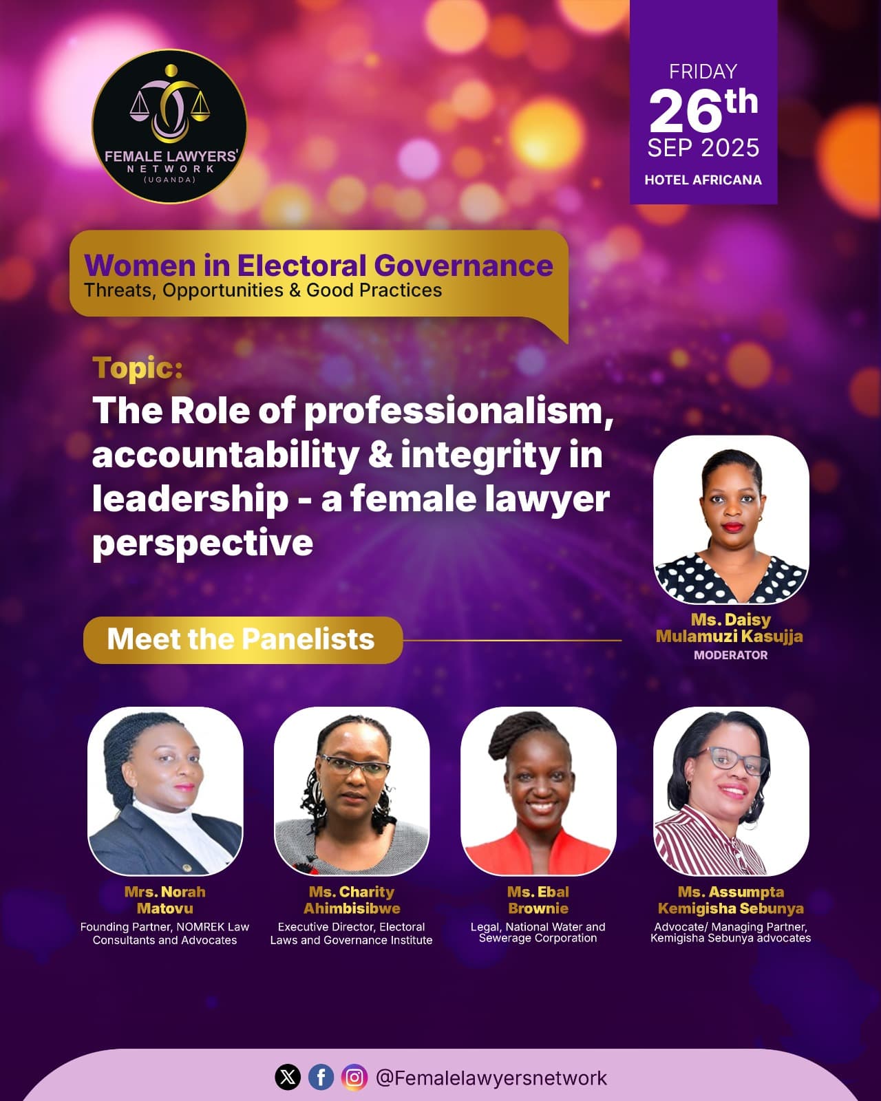 TOPIC : WOMEN IN ELECTORAL GOVERNANCE, HAPPENING AT HOTEL AFRICANA ON THE 26TH OF SEPTEMBER 2025